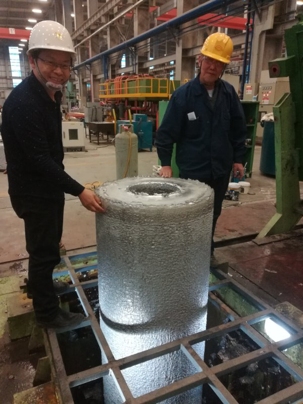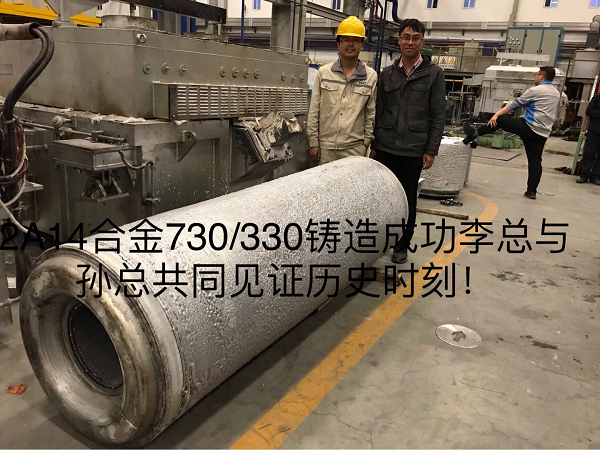 2019年4月15日,重庆庭澳冶金新材料有限公司为客户单位研制的空心铸锭铸造工装投入使用,成功铸造出2A14铝合金空心铸锭(规格为Ø730/330mm)。